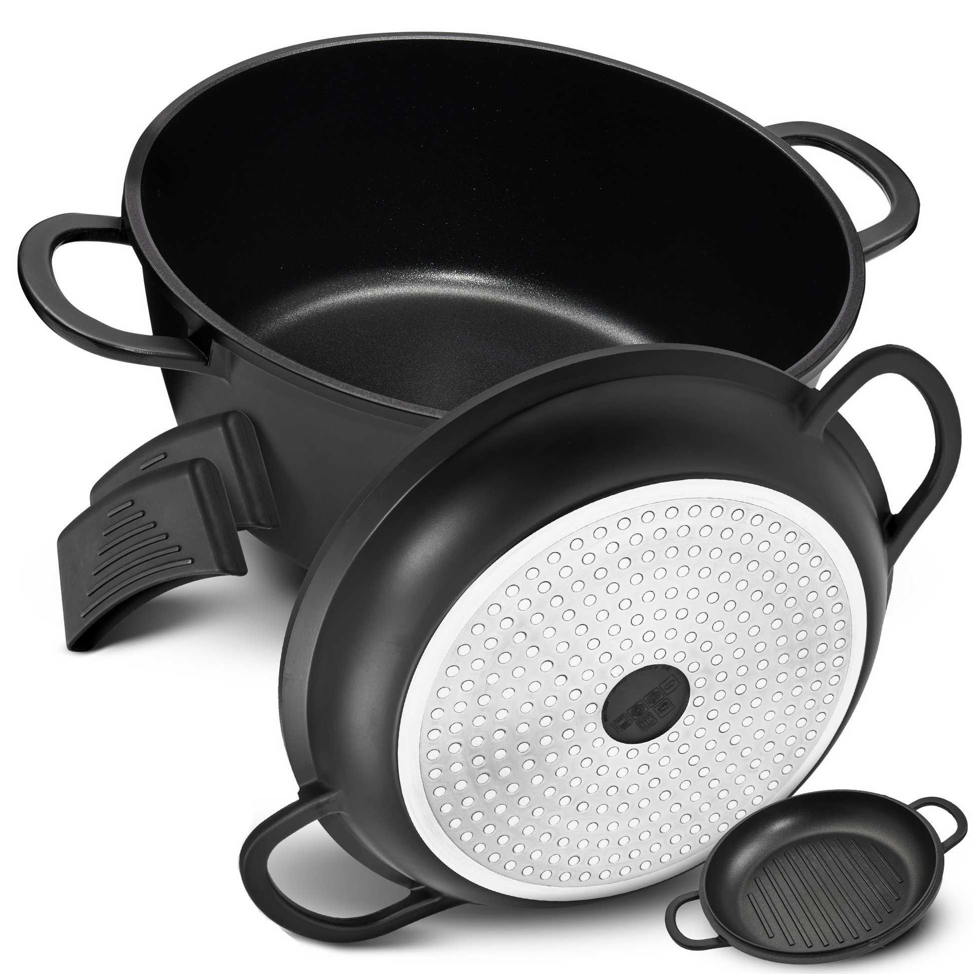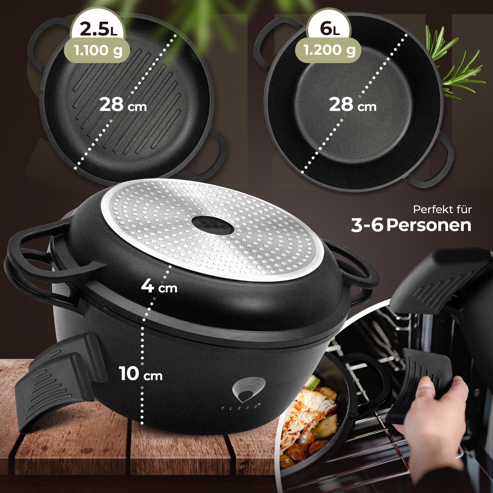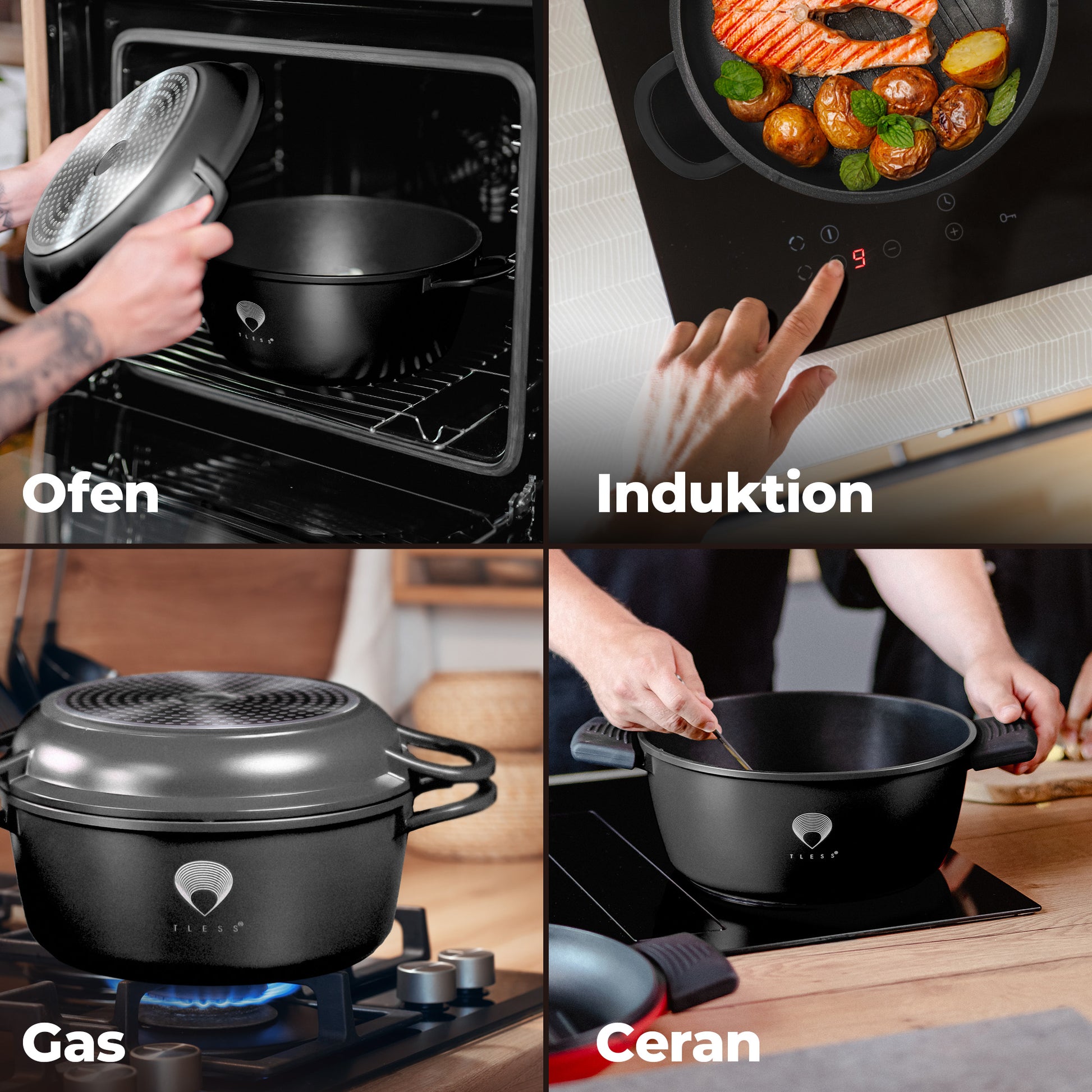 TLESS® 2in1 Aluguss Bräter mit Deckel Ø 28 cm schwarz