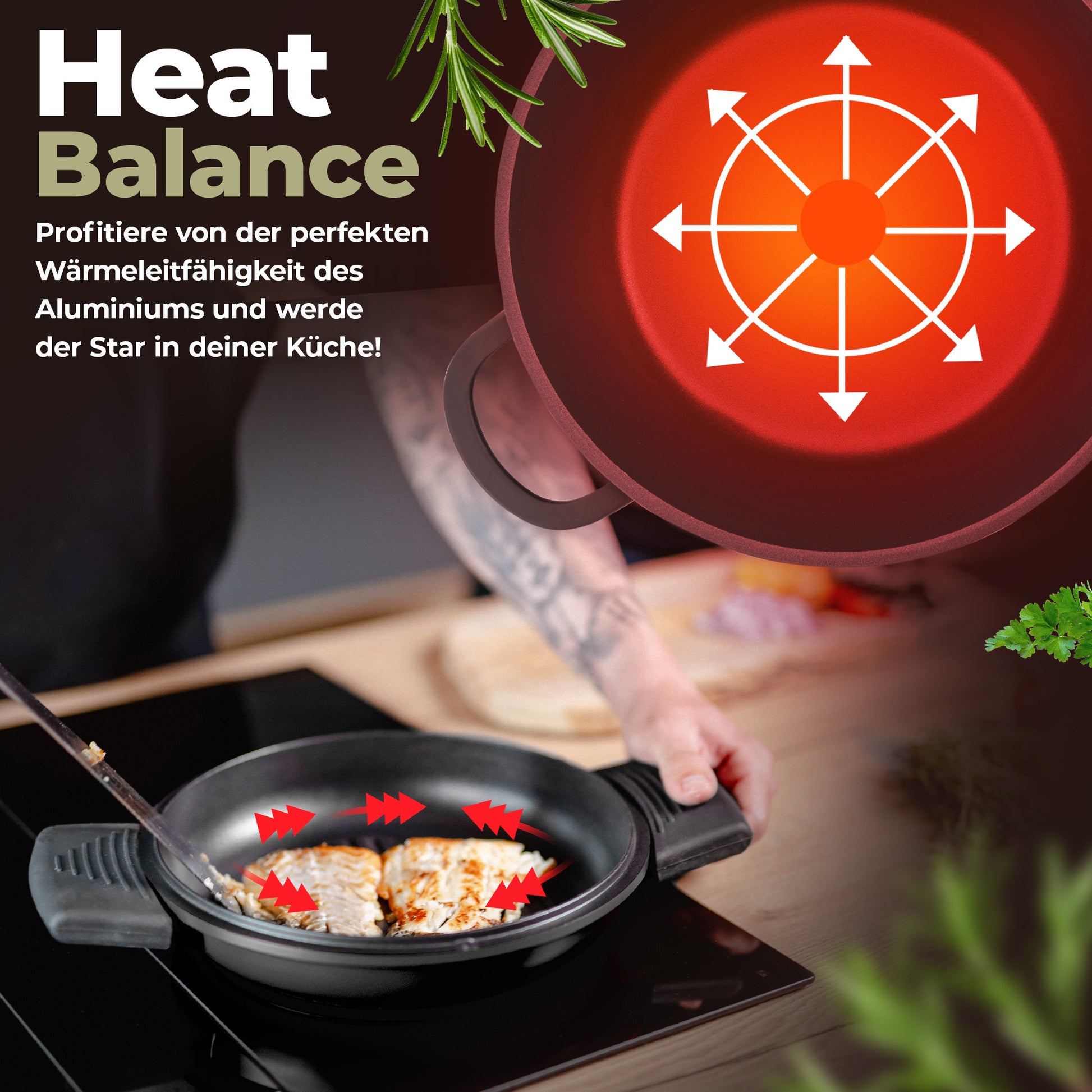 GLEICHMÄßIGKEIT GARANTIERT - Mit unserem Schmortopf gehört einseitig angebranntes Essen der Vergangenheit an! Dank seiner ausgezeichneten Wärmeleitung genießt du jedes Gericht gleichmäßig gegart und intensiv im Geschmack. Besonders Fleischgerichte entfalten so ihr volles Potenzial und verwöhnen deinen Gaumen mit jedem Bissen!