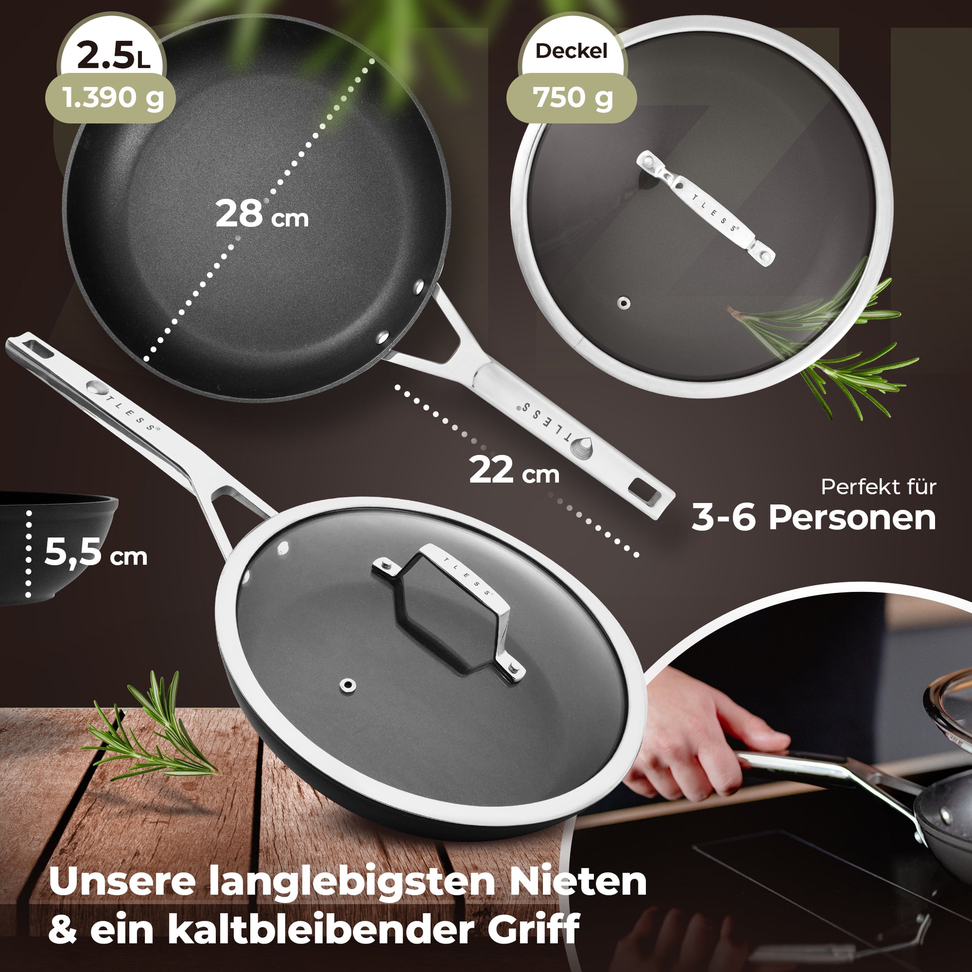 TLESS® Pfanne mit Deckel backofengeeignet Ø 28 cm schwarz